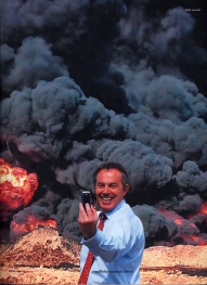 Protest of the imminent invasion of Iraq. Revulsion with government policy at home and abroad has always been the driving force behind their collaborative projects, UK, 2002.