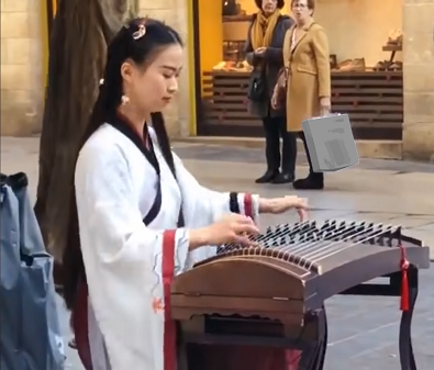 | 『樂器擴音+古式戲服+頭飾化妝+和聲節拍+街頭雜音』組成有別於音樂廳的演奏,另類處境推廣中國風音樂。所謂「千日琵琶百日箏」古箏樂器較易掌握,箏曲目廣闊宜聽易懂,漢戲服又能吸引遊人駐足欣賞,箏的演奏型態蘊藏中式古雅意識(有否留意箏最常出現於古劇裡),這些都變成了傳遞中國風文化的主要元素。國樂大多屬標題民樂,曲目亦會注入文字內容,對聽者有一定導向,帶領著聽眾意會音樂主題。 | |