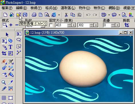 首先,開啟所需圖像。此圖有背景有花紋,有一隻雞蛋。