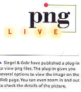 可攜式網路圖檔 PNG ........PNG 圖檔是一種新式的圖檔類型。它包含了 GIF 圖檔與 JPEG 圖檔的好處。PNG 全稱為 Portable Network Graphics,不少圖像軟件如 Macromedia xRes 2.0 亦支援 PNG 圖檔類型。PNG 壓縮圖檔的最大優勢,就是它可保留 48 位元的色彩,反之 GIF 壓縮圖檔方法只能保留 8 位元顏色。PNG 圖檔的存量比 TIFF 圖檔小百分之三十,而 PNG 圖檔亦較 JPEG圖檔為佳。 PNG 可攜式網路圖檔是被寄予厚望的網路圖檔格式,其特色如下所述: l 支援儲存最多 24 位元色彩的影像 l 可作為背景透明影,而且有 8 位元透明度資訊 l 影像能以壓縮的方式來進行儲存 l 影像儲存後不會造成失真的現象 l 不支援儲存 CMYK 色彩模式 l 支援 interlaced,可以讓影像以交錯的方式顯現出來 l 適合應用於網際網路