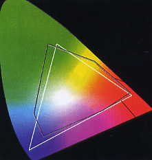 從圖中可看出,RGB 色域比 CMYK 色域要大些。由於顯示器的生產廠商不同,雖然它們都是用 RGB 表示顏色,但各種顯示器的色域也是不同的。