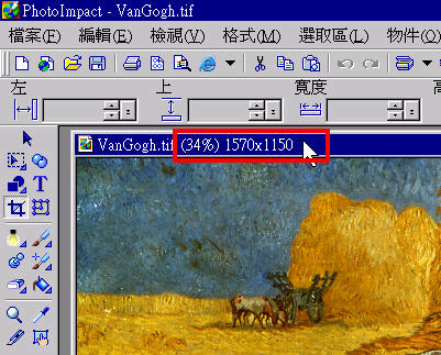 有時候當開啟了圖像後,你們會發現圖像的尺寸比想像中過大(或太細),這時候便需要改變圖像大小。因為,圖像的尺寸過大,一方面其檔案容量大,另一方面,在 PhotoImpact 或 PhotoShop 這些軟件中使用這些圖像,會增加電腦資源的使用(例如增加處理圖像時間)。正常來說,圖像的尺寸的百分比(下圖圖樣的括號內數字)應在開啟時接近 100% 就比較好。