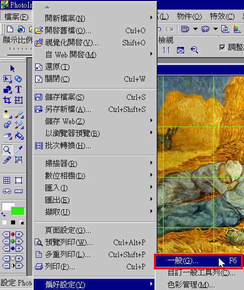 如需要改變格線的設定,只需選取選單上的『檔案』、『偏好設定』、『一般』。