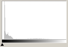 上面的影像中,大部份為明度較低之灰色。因此在階調分佈圖中,像素明暗值都集中於低明度的區域。