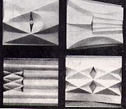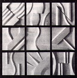 平面到立體是立體構成的一個訓練階段。半立體構成的構圖和平面構成類似, 還只有一個欣賞面, 但己有體積的起伏變化, 是位於平面構成與立體構成之間的造型, 是平面走向立體的最基本訓練。半立體構成常使用的材料有紙張﹑泡沫板﹑木板﹑石膏﹑水泥﹑石板﹑金屬板﹑玻璃等。這一訓練的造型技巧包括: 剪切﹑彎曲﹑折﹑嵌接﹑捻轉黏貼﹑泥塑﹑刻削等。