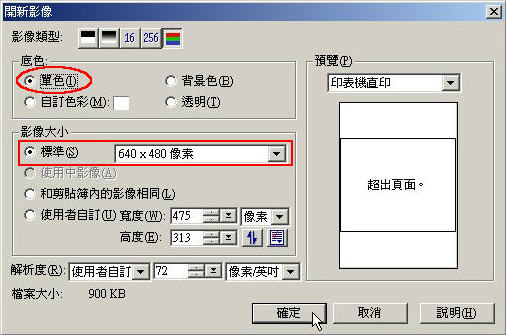 首先開啟一個新檔案,底色為『單色』,影像大小為『640*480像素』。