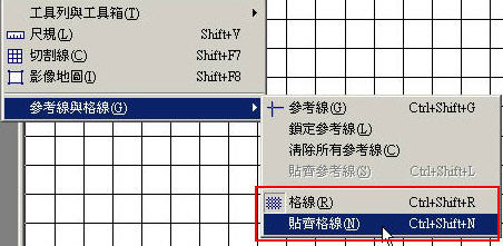 在『檢視』 ,『參考線與格線』 選擇 『格線』和『貼上格線』。