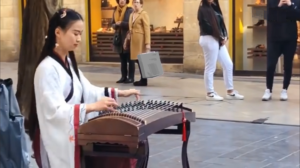 | 『樂器擴音+古式戲服+頭飾化妝+和聲節拍+街頭雜音』組成有別於音樂廳的演奏,另類處境推廣中國風音樂。所謂「千日琵琶百日箏」古箏樂器較易掌握,箏曲目廣闊宜聽易懂,漢戲服又能吸引遊人駐足欣賞,箏的演奏型態蘊藏中式古雅意識(有否留意箏最常出現於古劇裡),這些都變成了傳遞中國風文化的主要元素。國樂大多屬標題民樂,曲目亦會注入文字內容,對聽者有一定導向,帶領著聽眾意會音樂主題。 | |